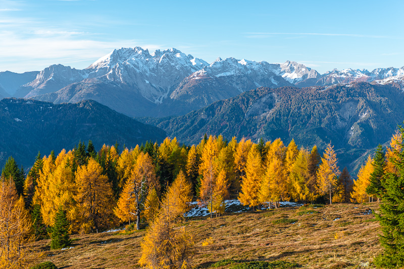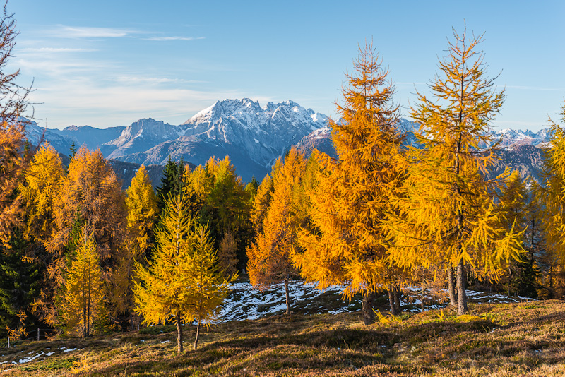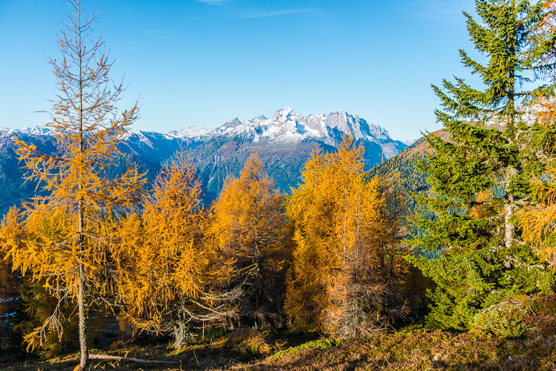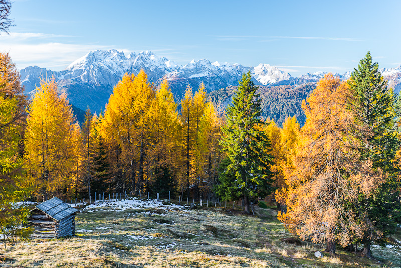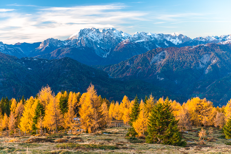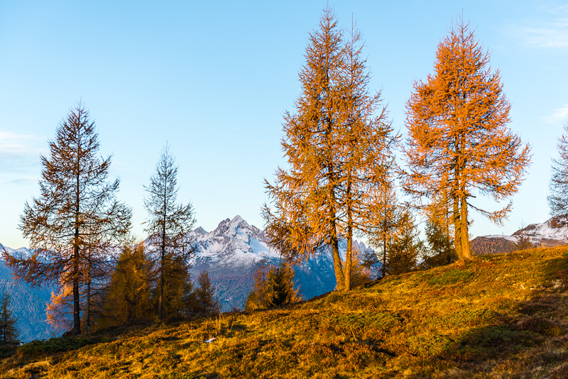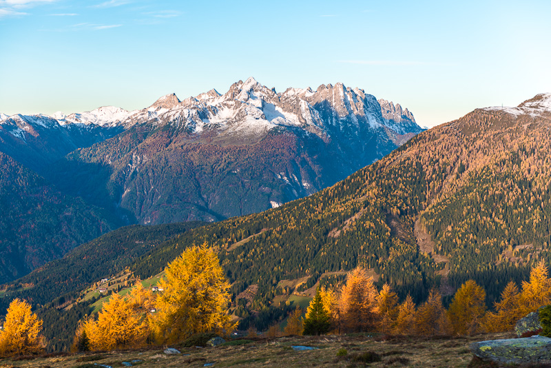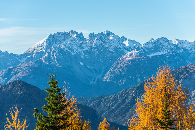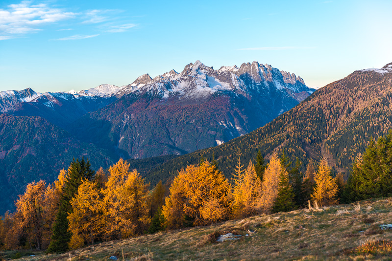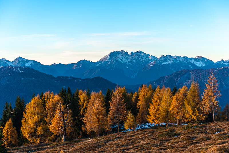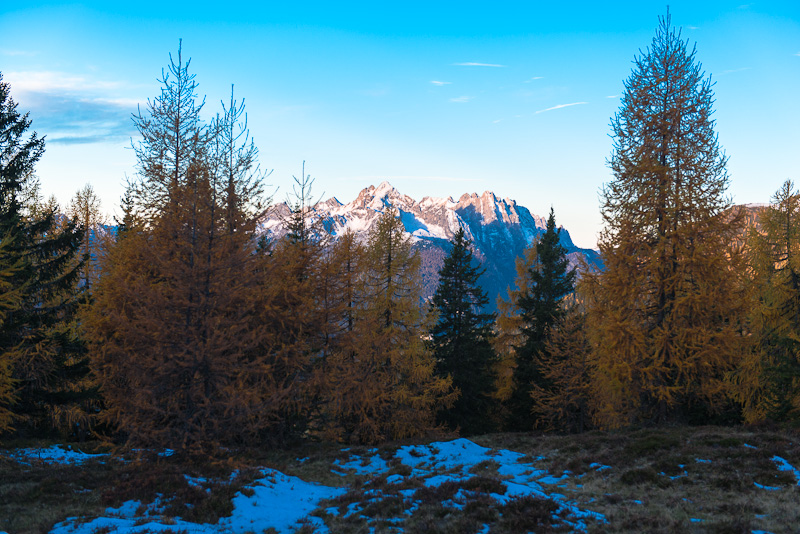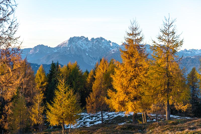 Here, everything still is in shadow. The Lienz´ Dolomites in the sun.