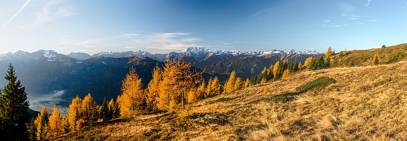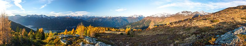 Panoramiv view of the Gailtaler and Karnic Alps as well as the Lienz´ Dolomites, far right the neighbouring summits of the Kreuzeck group. Click here or into the picture for a larger version.