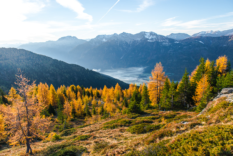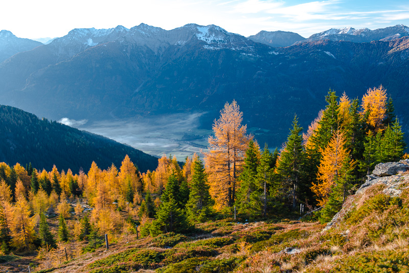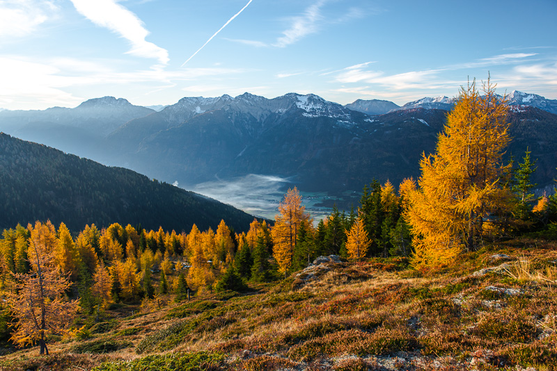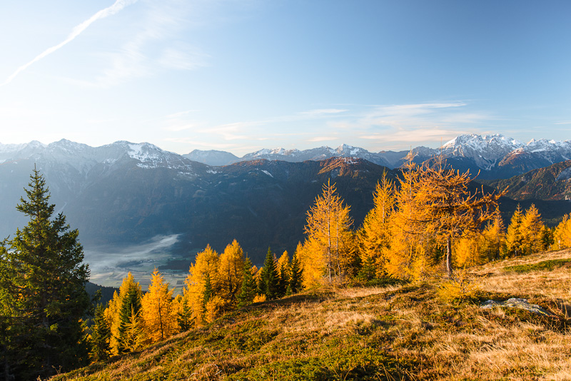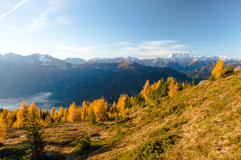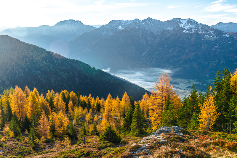 Thin mist over the Drau valley ahich will dissolve in due course.