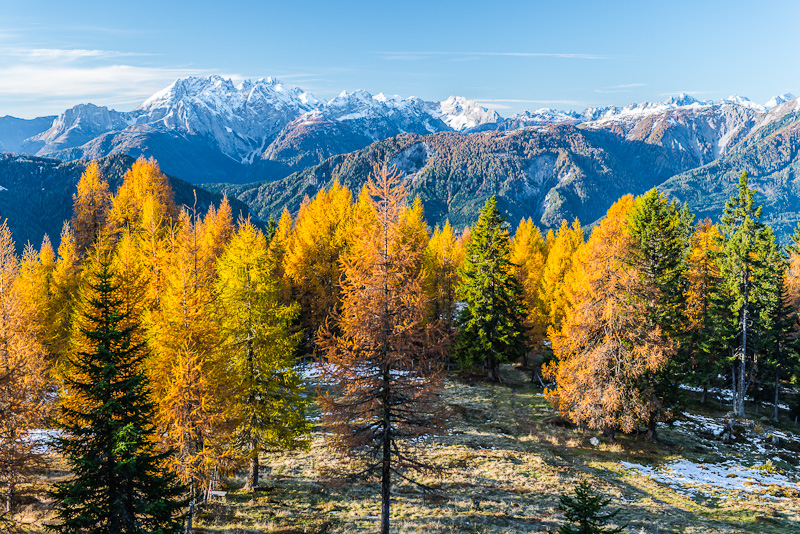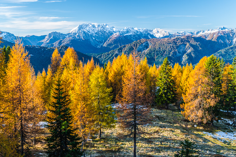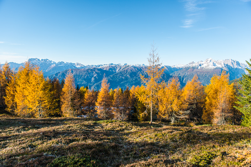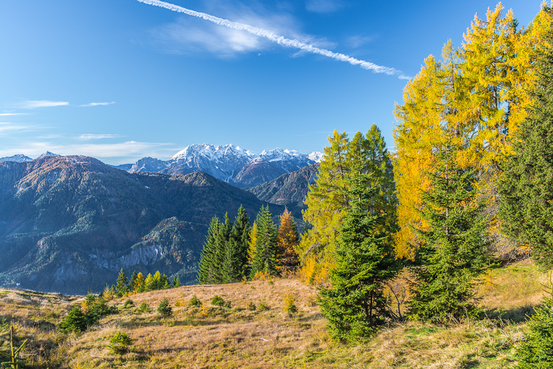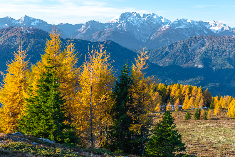 The Gailtal saddle in the foreground, with the summits of the Karnic Alps on the boarder to Italy.