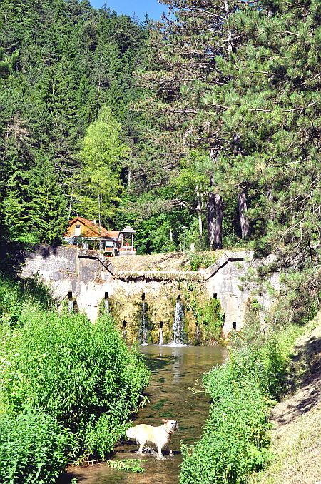 Beim Parkplatz am Ausgang der Klamm Kleine Wehranlage - offenbar ein Rückhaltebecken für Hochwasser