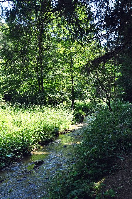 Ein extrem heißer Tag mit bis zu 34 Grad. Wo sucht man Abkühlung? Eine Möglichkeit ist die Johannisbachklamm, eine sehr enge Felsschlucht bei Würflach, durch die ein Bach rauscht. Dort sollte es wirklich kühler sein.