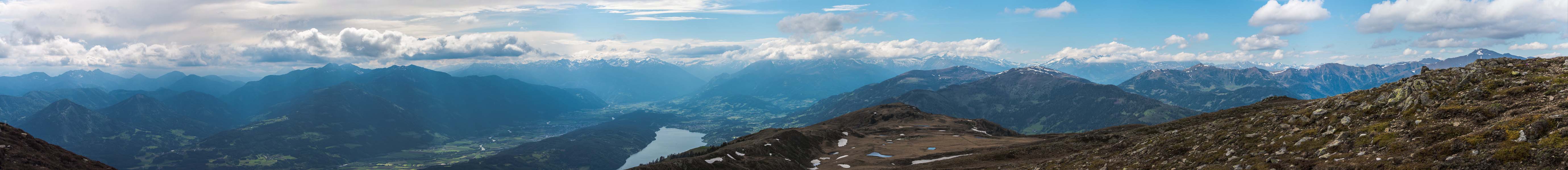 Noch einmal ein Panorama von Westen bis Nordosten, von nahe dem Gipfel des Mirnocks.