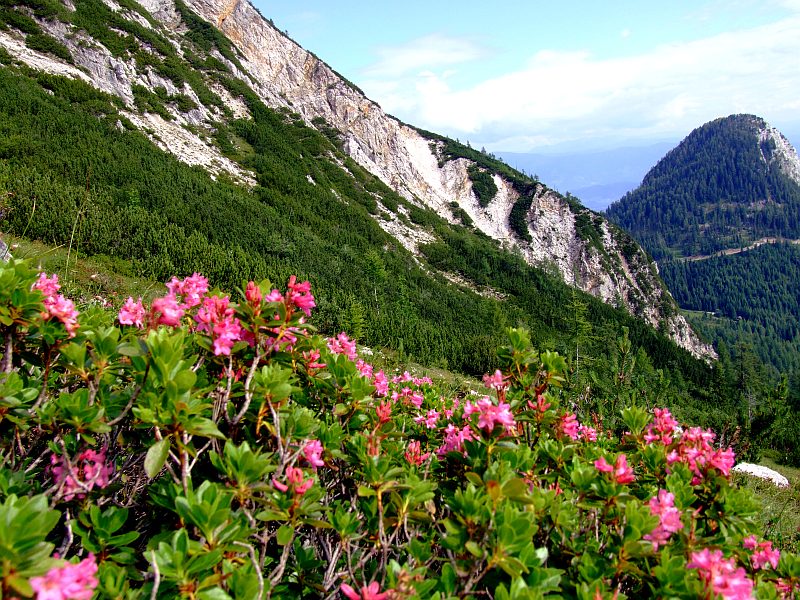 Alpine roses, this time the hairy variant, different from those growing on Gamskarkogel, though being very similar.