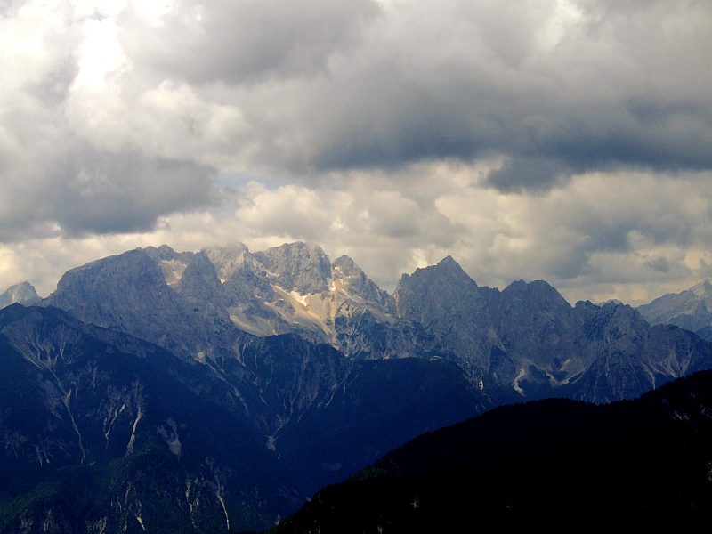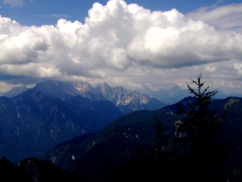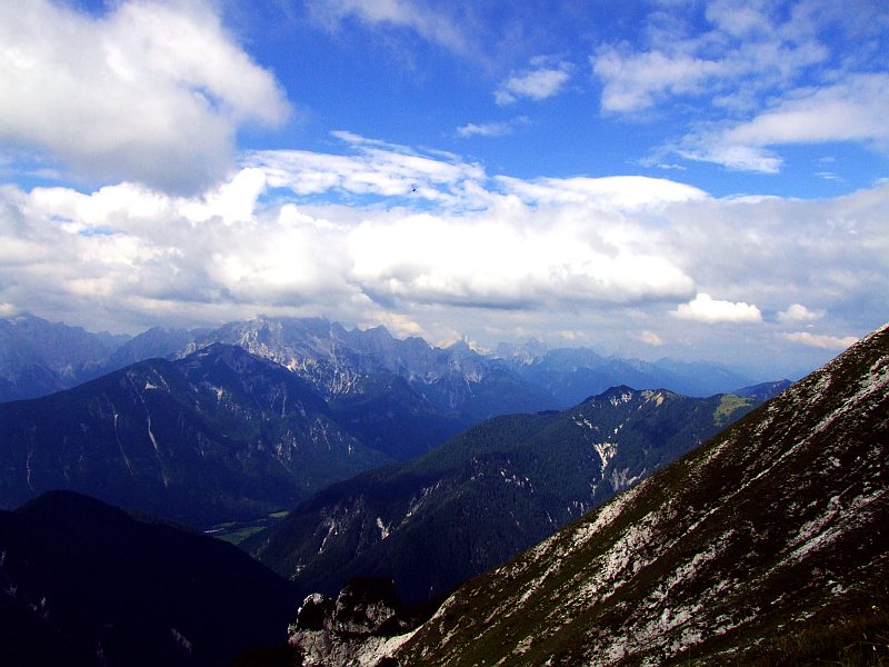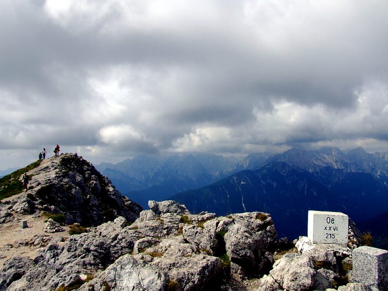 Staning exactly on the border to Slowenia, I look over to the Julic Alps - the summit of Triglav (2.864 m) is wrapped in clouds.