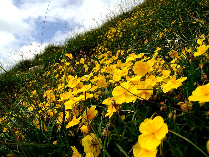 Shortly before the summit huge amounts of Alpine rock roses with their stunning yellow flowers.