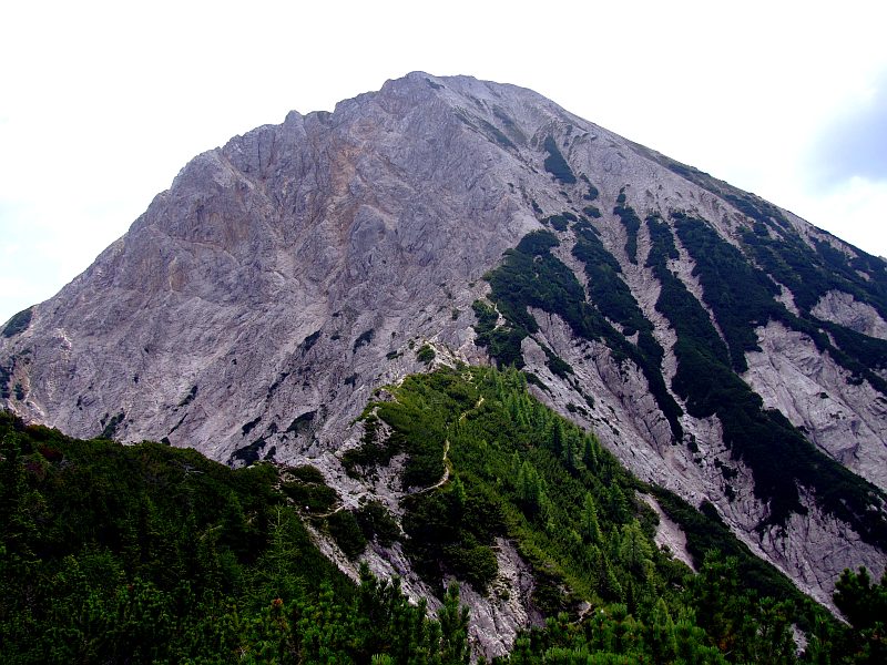 Now I walk down the extremely steep western slope of Mittagskogel. Triglav still wrapped in clouds.