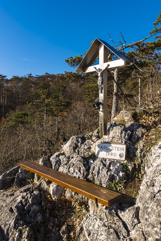 Ernst Köppl from Wiener Neustadt´s section of the Austrian Alpine club has told me about a wonderful view point near the Eisenstein cave.35 years ago, someone erected a cross on his favourite place, since then the place is known after Mr. Karl as "Karlstein".