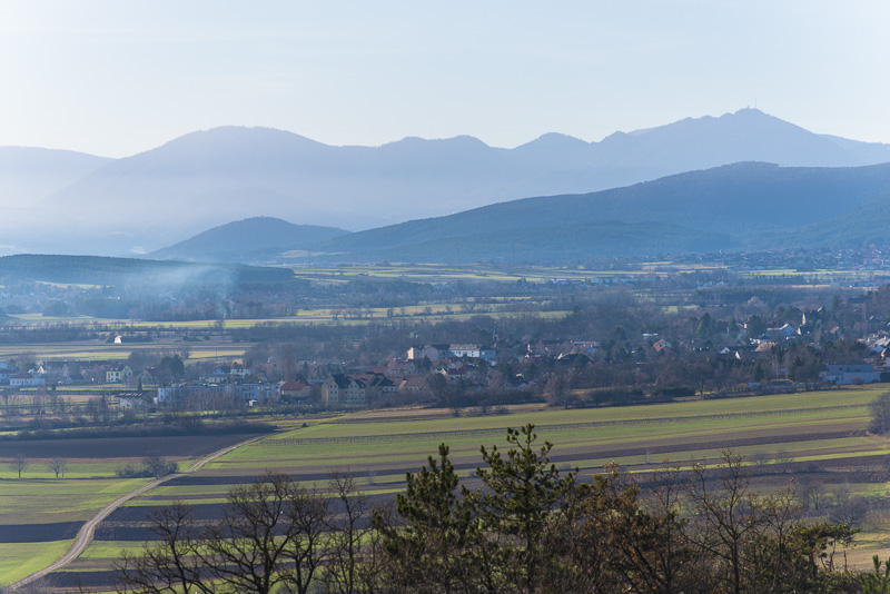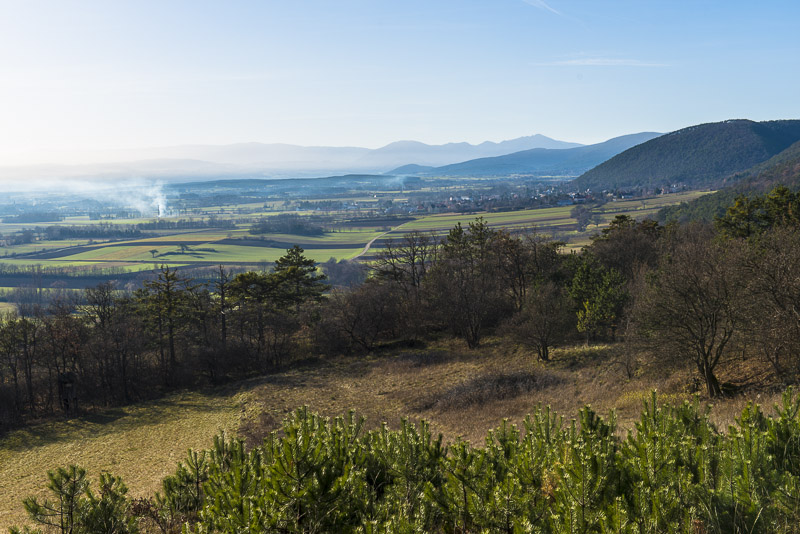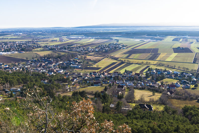 View down to Vienna´s plain with Bad Fischau in the foreground.