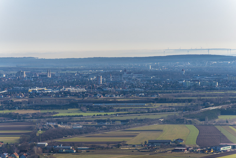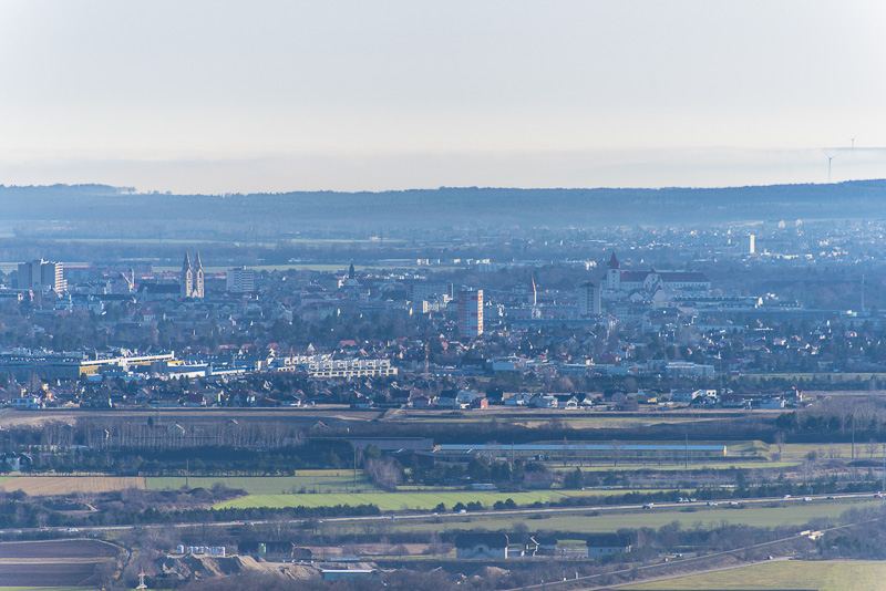 Zooming in on the centre of Wiener Neustadt. Far left the hospital, followed by the cathedral, far rightr the buildings of the military academy.