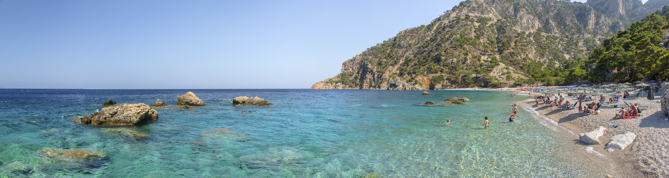 Halb Halb - Panoramabild der Bucht von Apela, Karpathos.