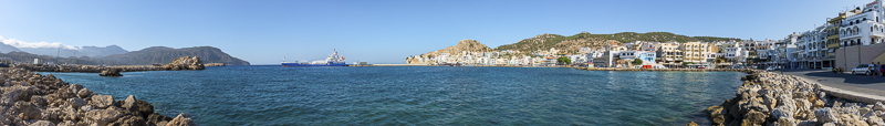 Noch ein Panorama des Hafens von Pigadia. Hierher oder ins Bild klicken für eine größere Darstellung.