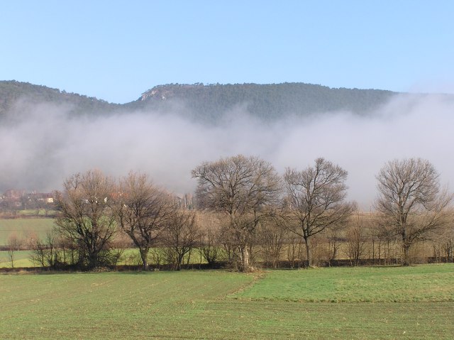After rain in the night there is some morning mist however dissolving quickly on the slopes of Fischauer Vorberge