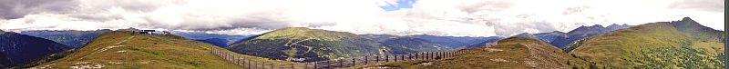 Nachdem sich gestern der Regen schon angekündigt hat, weckt uns heute um 6 Uhr morgens ein Gewitter aus dem Schlaf. In der Folge regnet es den Großteil des Vormittags, den wir im Wellnessbereich unseres Hotels verbringen. Zu Mittag hört der Regen dann auf, und um 15:00 ist es so weit klar und trocken, dass ich es riskieren kann, noch ein wenig die Umgebung zu erkunden. Ich wandere also vom Katschbergsattel aus zur Gamskogelhütte und von dort aufs Tschaneck (2.024 m), hinten hinunter zur Gontalscharte (1.911 m) und von dort um der Berg herum zurück zur Gamskogelhütte und wieder hinunter, alles zusammen ein dreistündiger Nachmittagsspaziergang mit etwa 400 m Auf- und Abstieg.