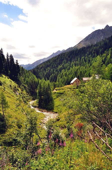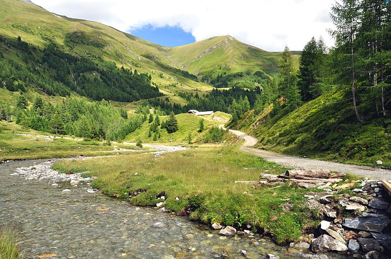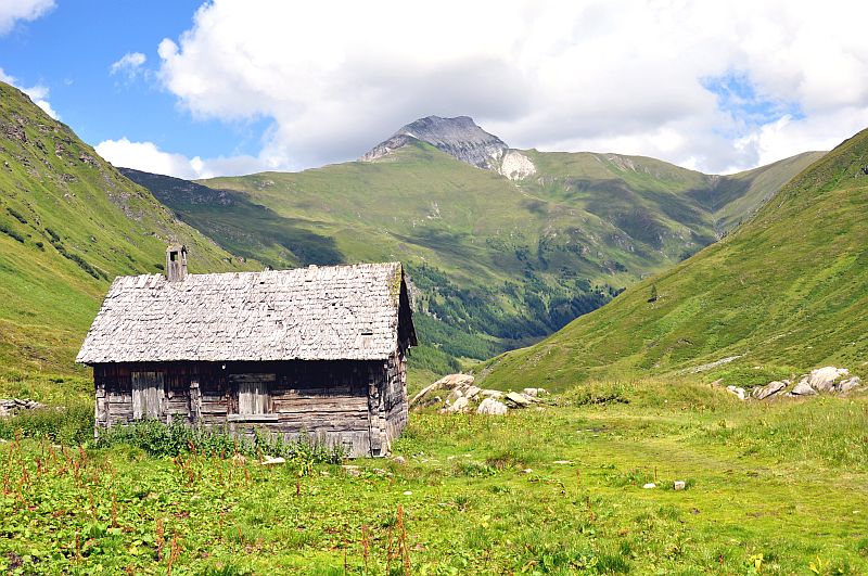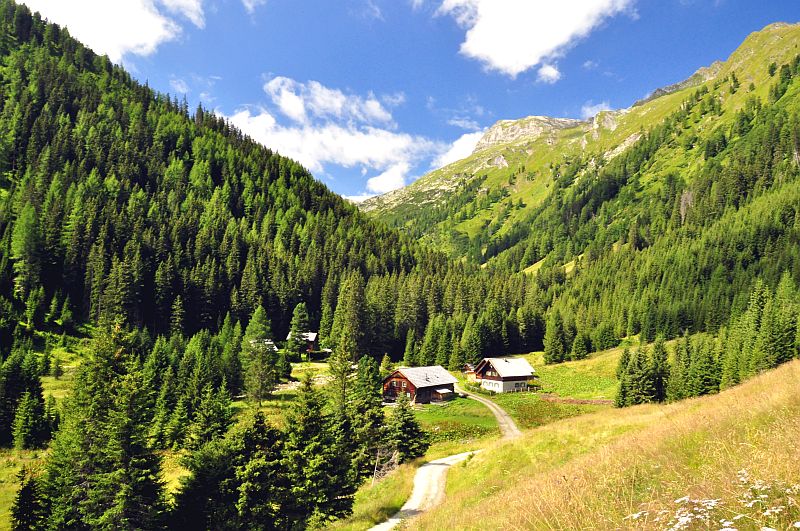 Almhütten der Moritzenalm - hier zweigt ein Seitental zum Karwassersee ab.