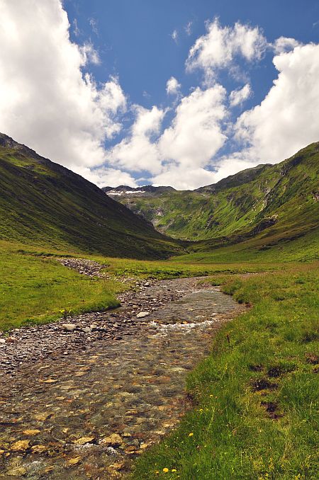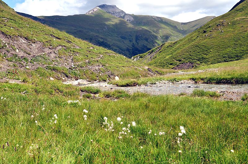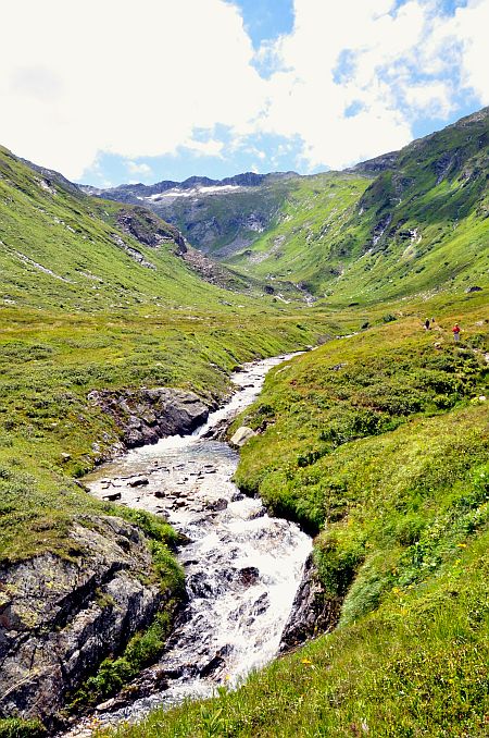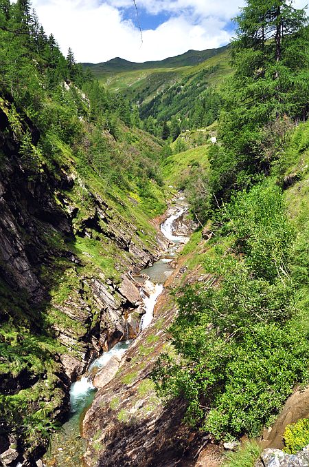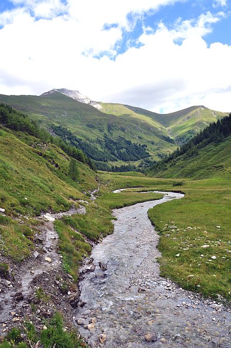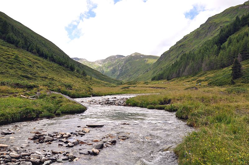 Das Tal biegt sich nun nach links und wird etwas breiter. Die Mur hat hier viel mehr Wasser - oberhalb des Ableitungsstollens.