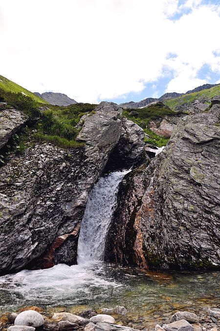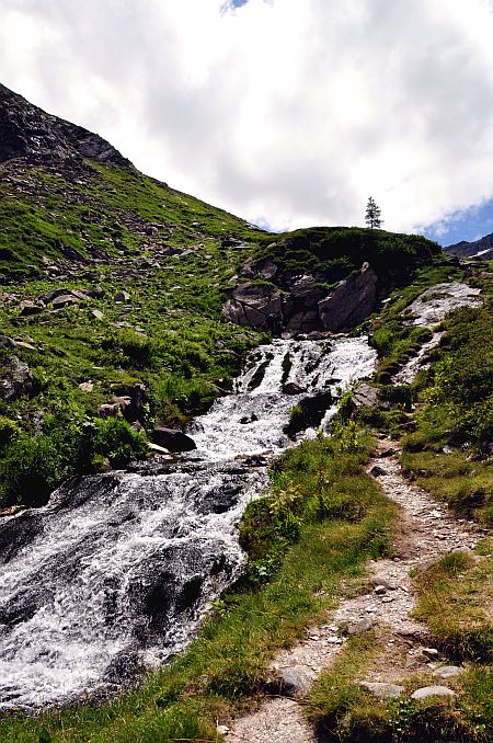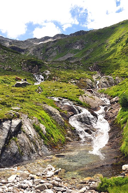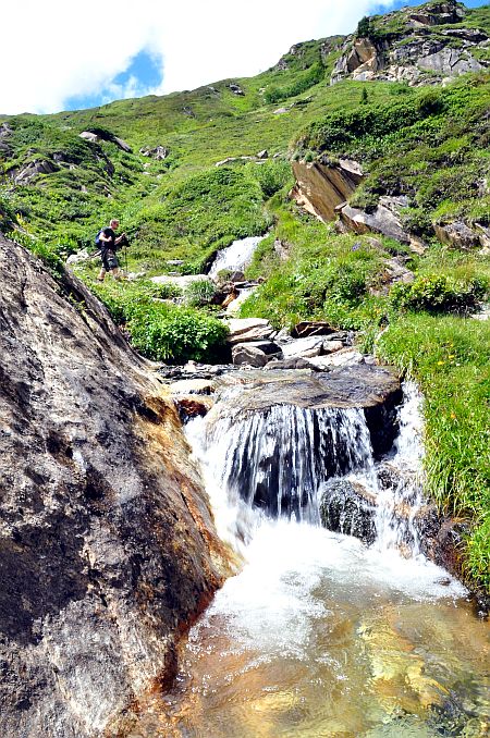 ... dieser als kleiner Wasserfall von etwas weiter oben kommende Bach ...