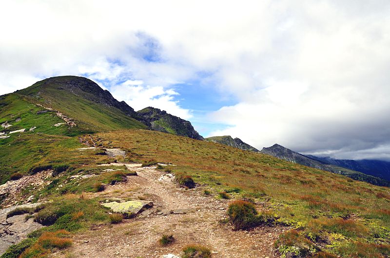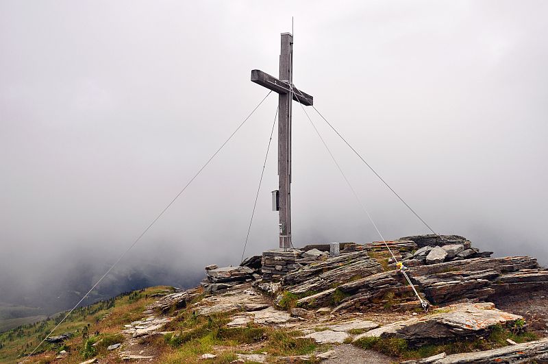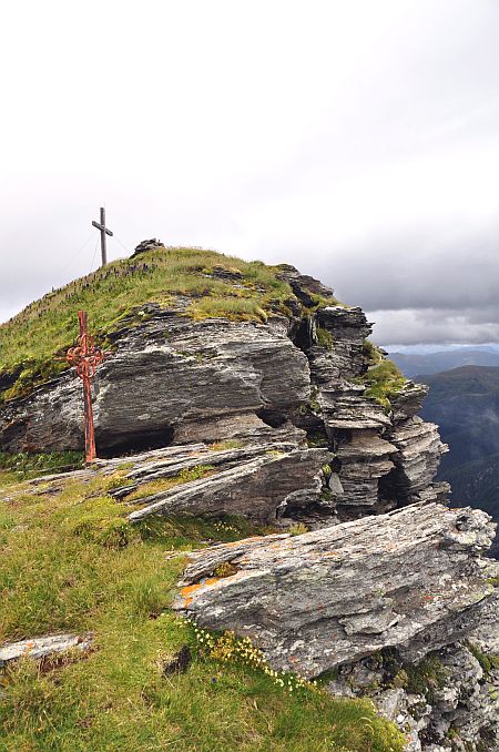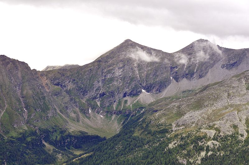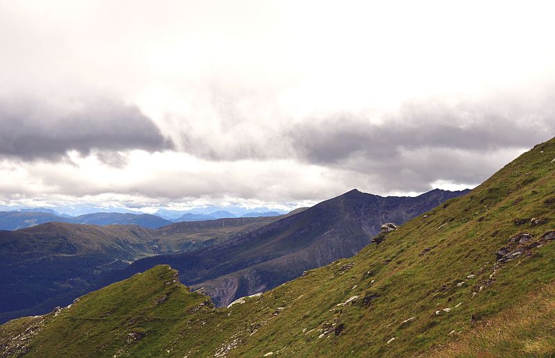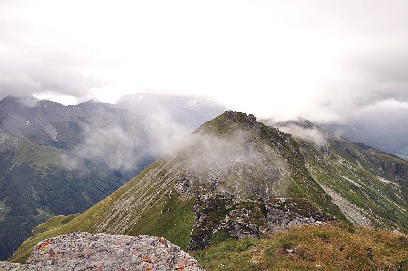 Der Gipfel rückt näher, der Westgrat dahinter zu Oblitzen (2.658 m), Silbereck (2.810 m) und Hafner (3.076 m) wird sichtbar (die letzten beiden aber noch nicht im Bild).