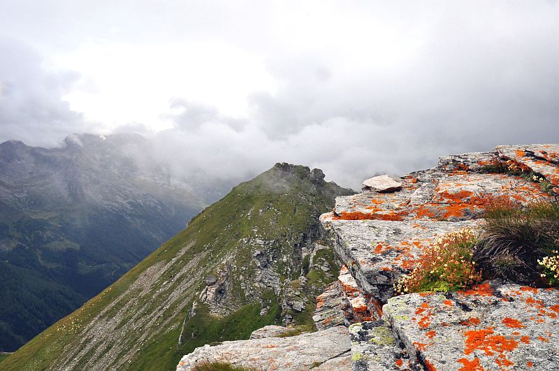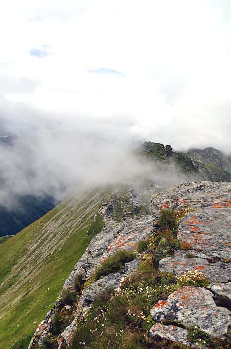 Eine kleine Mulde am Grat bietet einen geschützten Platz für die Vegetation ...