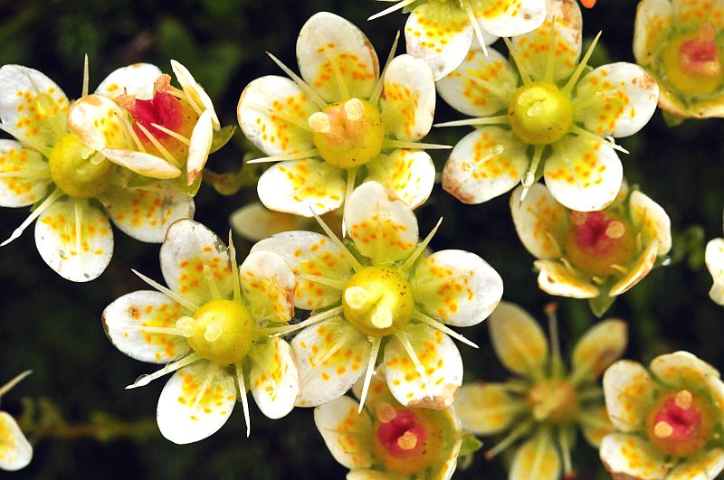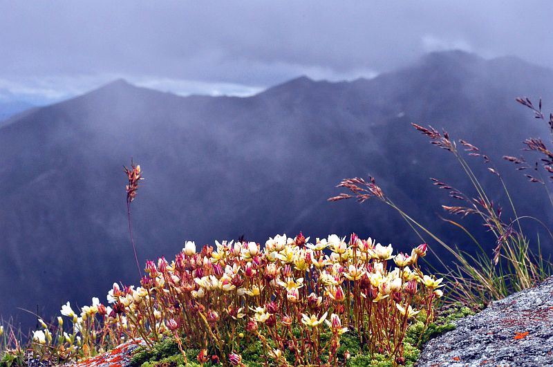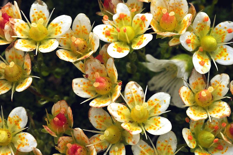 Moos - Steinbrech (Saxifraga bryoides) wächst hier in vielen Felsspalten.