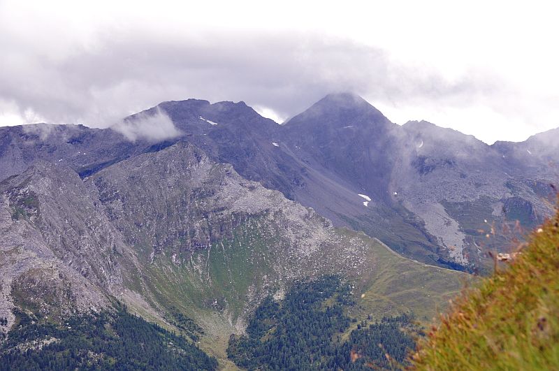 Reitereck jetzt ganz links, im Zentrum der Schober Eissig (2.967 m), mit dem Gipfel teilweise in Wolken.