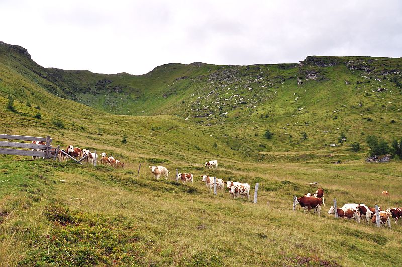 Im Tal geht es nun weniger steil bergab, vorbei an dieser Kuhherde.