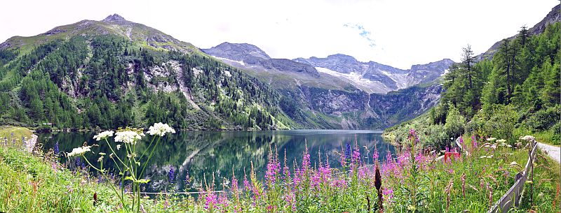 Panorama des Unteren Rotgüldensees, von der Rotgüldenseehütte aus gesehen. Hierher oder ins Bild klicken für eine größere Darstellung.