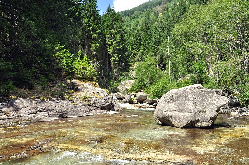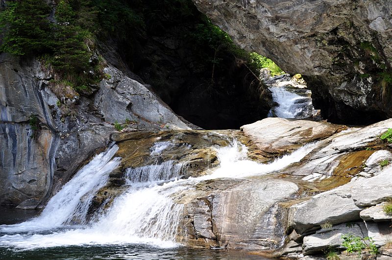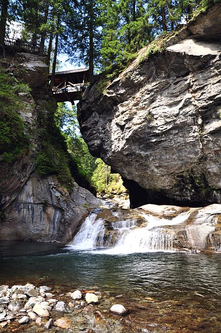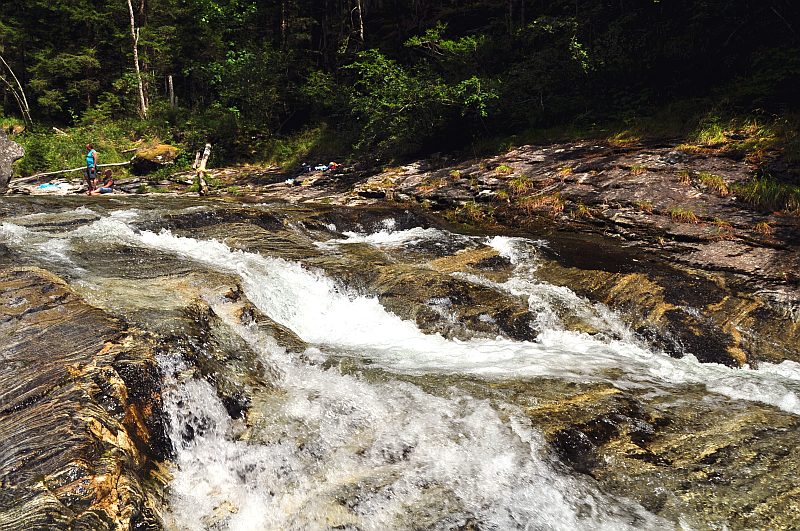 Die Malta rauscht hier durch tiefe Schluchten, sie hat aber viel weniger Wasser als natürlicherweise, weil vieles davon für das Kraftwerk abgezweigt wurde. Dies hier sind die Fallertümpfe.