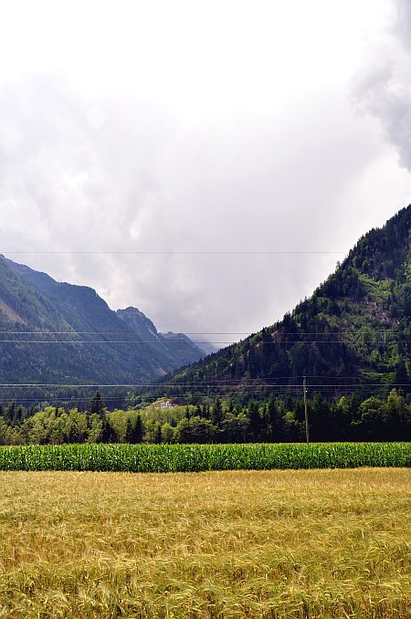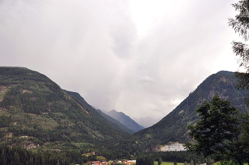 Jetzt gießt es dort oben schon in Strömen, und immer wieder donnert und blitzt es. Bis hierher kommt der Regen aber nicht, es fallen nur ein paar Tropfen.