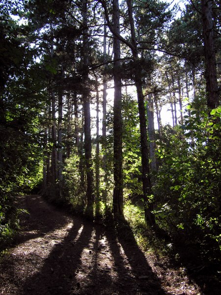 Jetzt geht es hinter Netting durch den Wald auf den Kienberg.