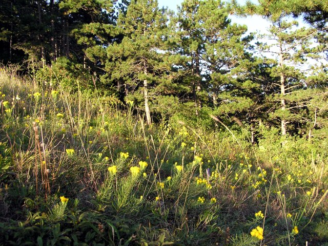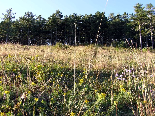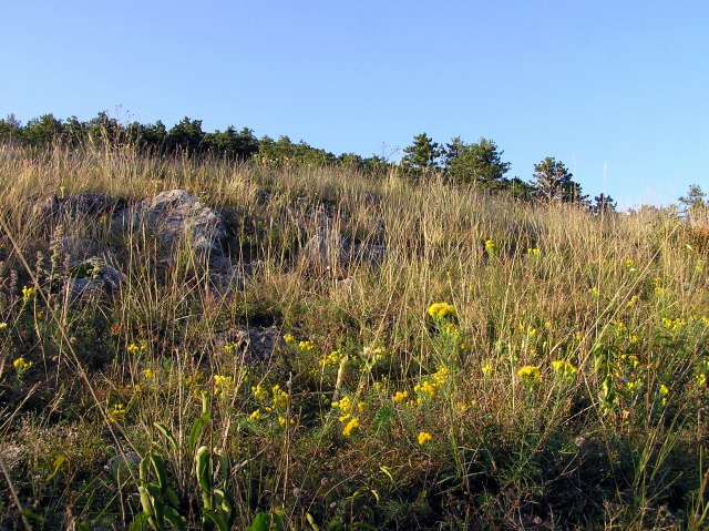 Zurück, kurz vor Winzendorf: der Blosse Berg ist übersät von Goldschopf - Astern (Aster linosyris)