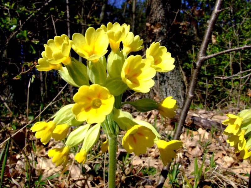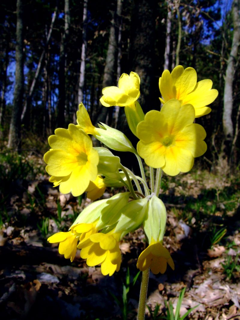 First cowslips (Primula veris) in the forest