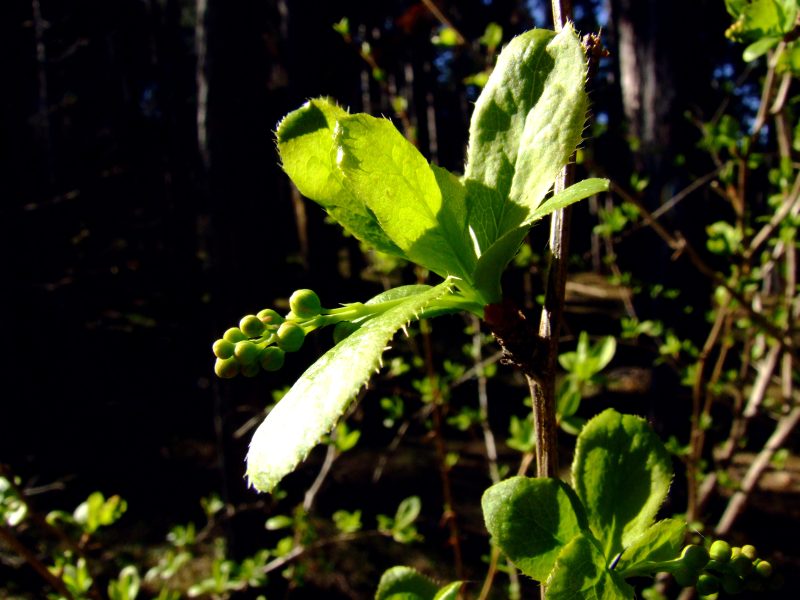 Branches of barberry (Berberis vulgaris) are thriving young leaves ...
