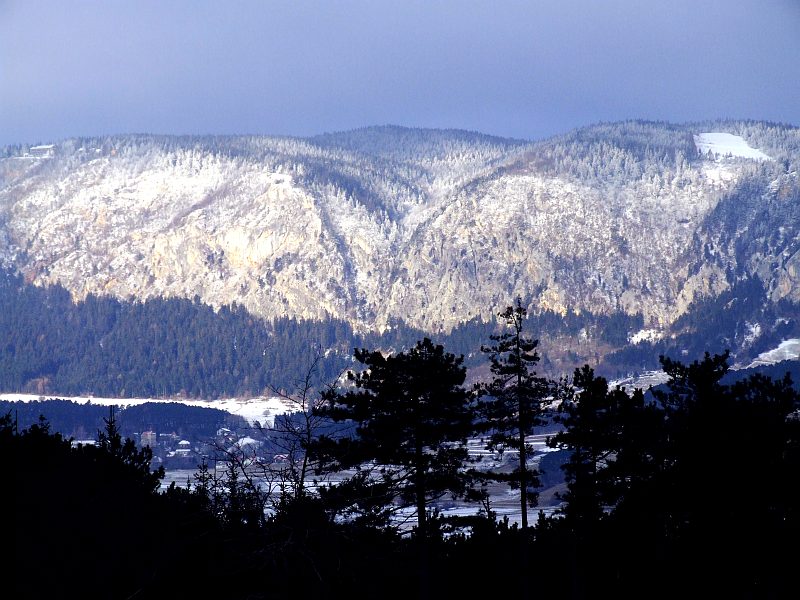 It has become very, very cold with daytime temperatures below zero C. Starting shortly before 9 a.m. at about -4C I walk around Schlossberg, then through the small hamlet of Netting and finally climb Kienberg (650 m).