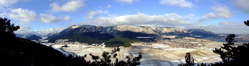 180 degree - panoramic view of Hohe Wand, as seen from Kienberg. Click here or into the picture for a larger version.