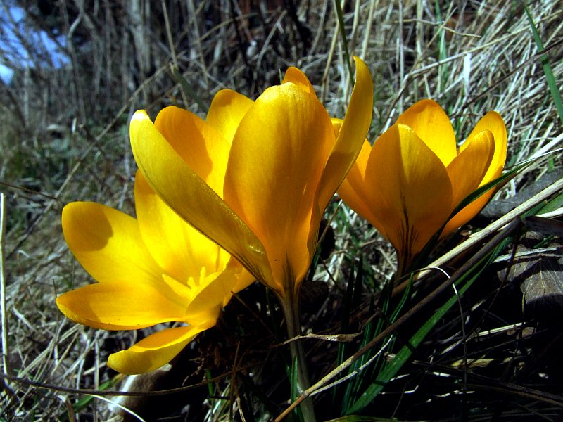 I find a small house near a vineyard, where crocus has been planted in the meadow.
