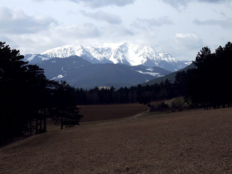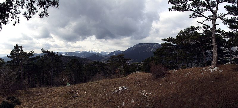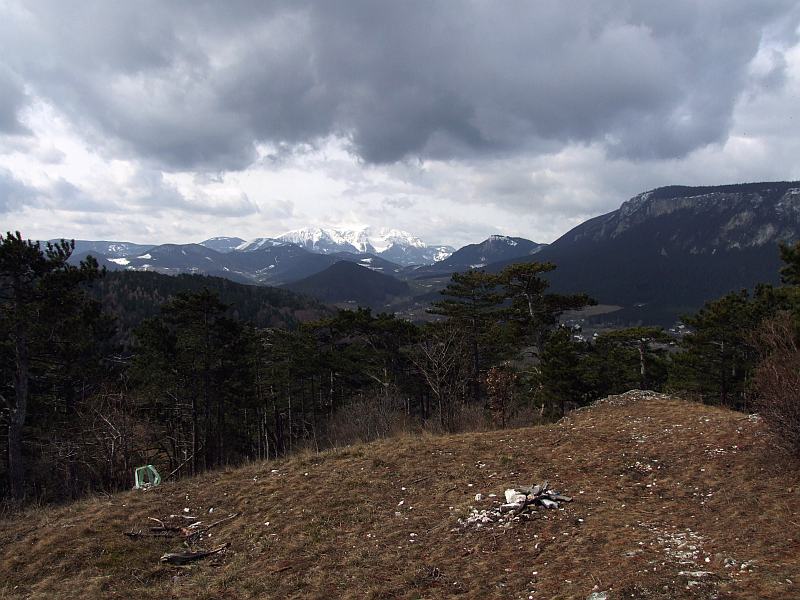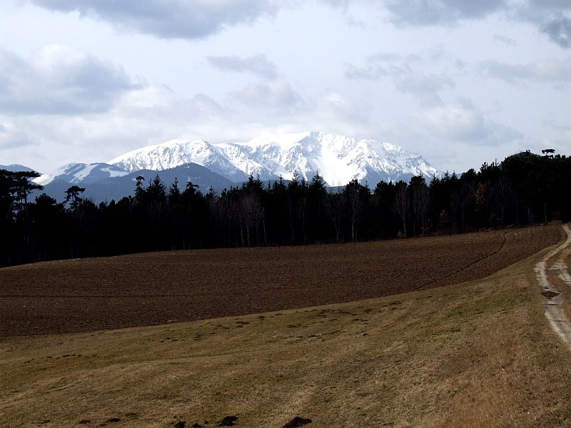 Panoramic view with Kienberg summit, Schneeberg and Hohe Wand. Click here or into tue picture for a larger version.