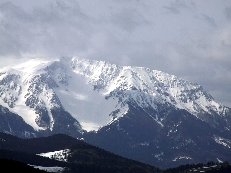 ... here with zoom on Hochkogelhaus. Still lots of snow, seems that a bit has added up during last night´s rain.