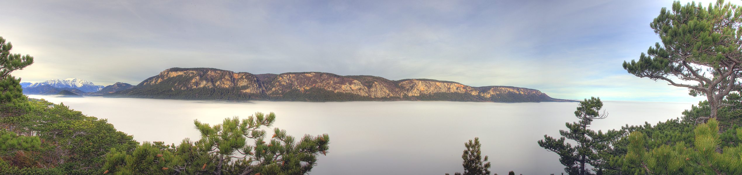 Panoramic view of Schneeberg and Hohe Wand, as seen from a small rock plateau near the summit of Kienberg.
