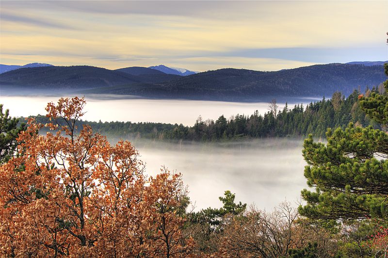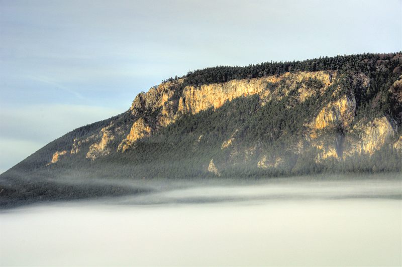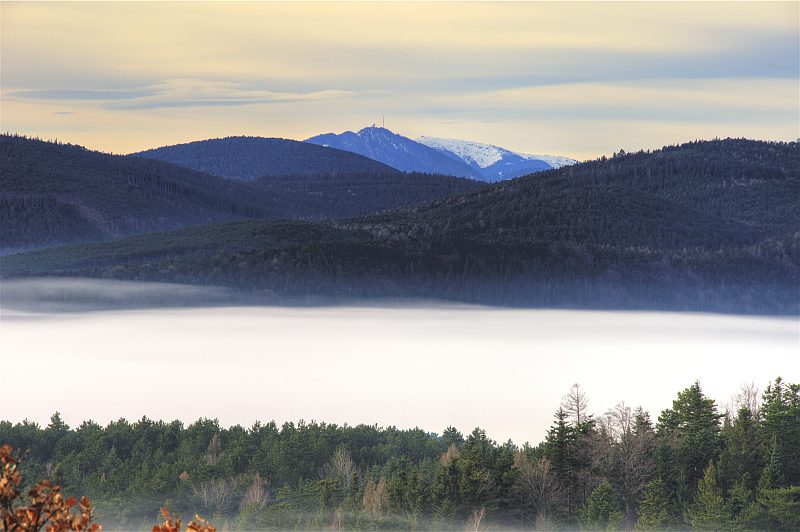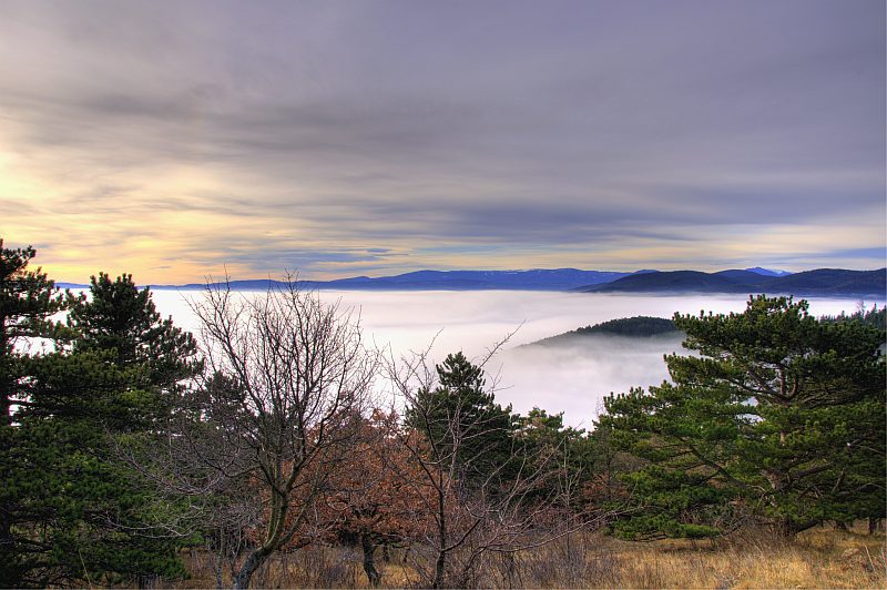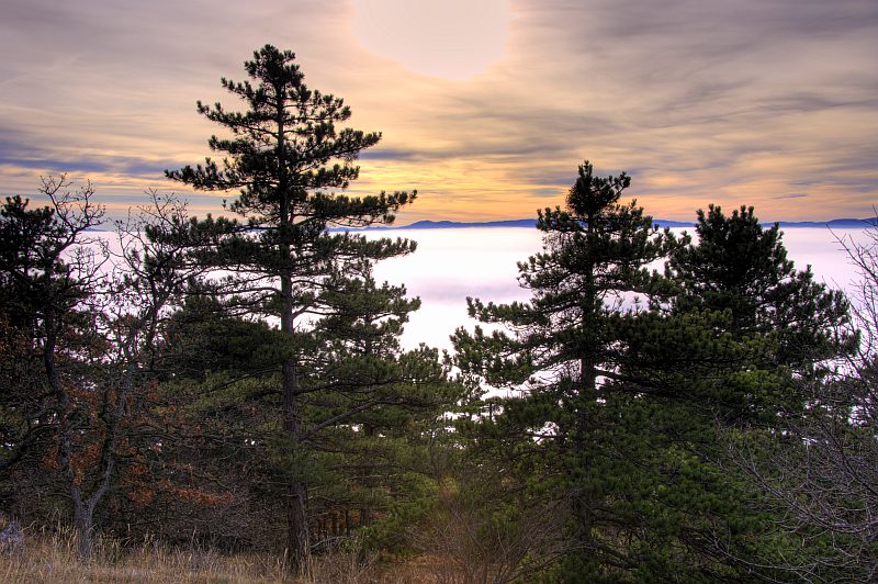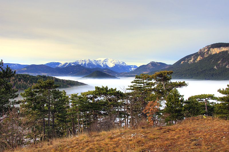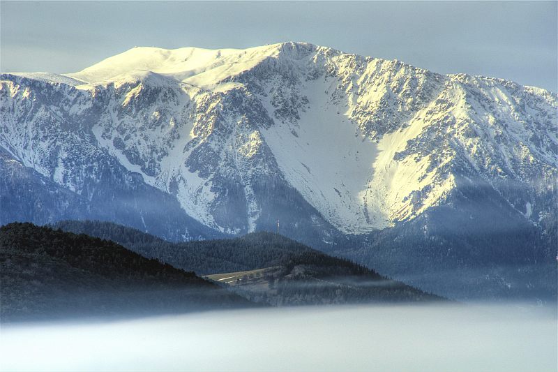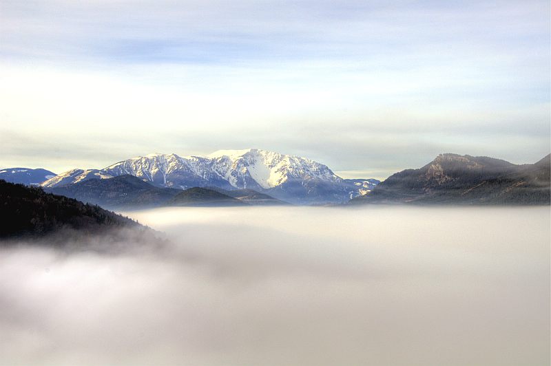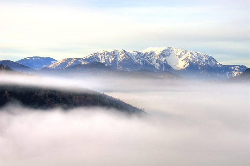 Nach etwa zwei Dritteln des Weges ist der Nebel zu Ende. Hier bereits nahe des Gipfels - Blick zum Rosaliengebirge ...