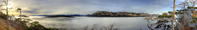 Gleich tauche ich in den Nebel ein. Ein letztes Panorama. Hierher oder ins Bild klicken für eine größere Darstellung.