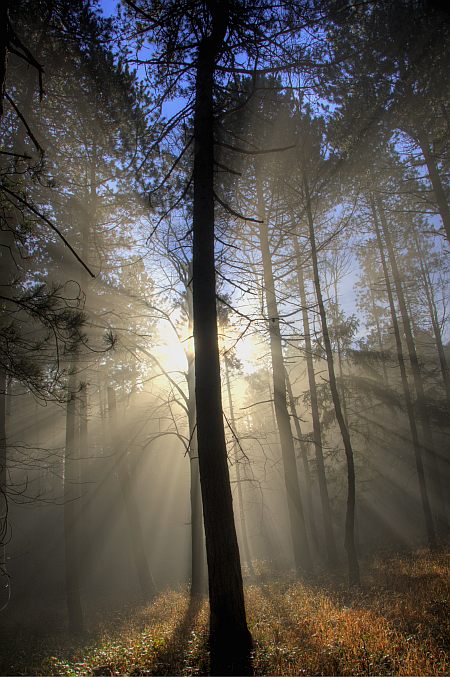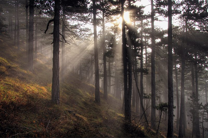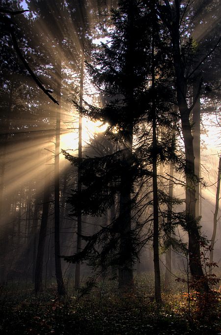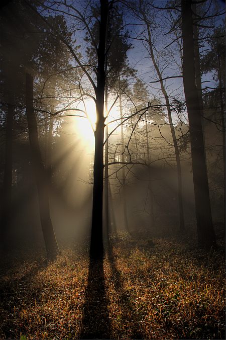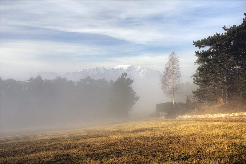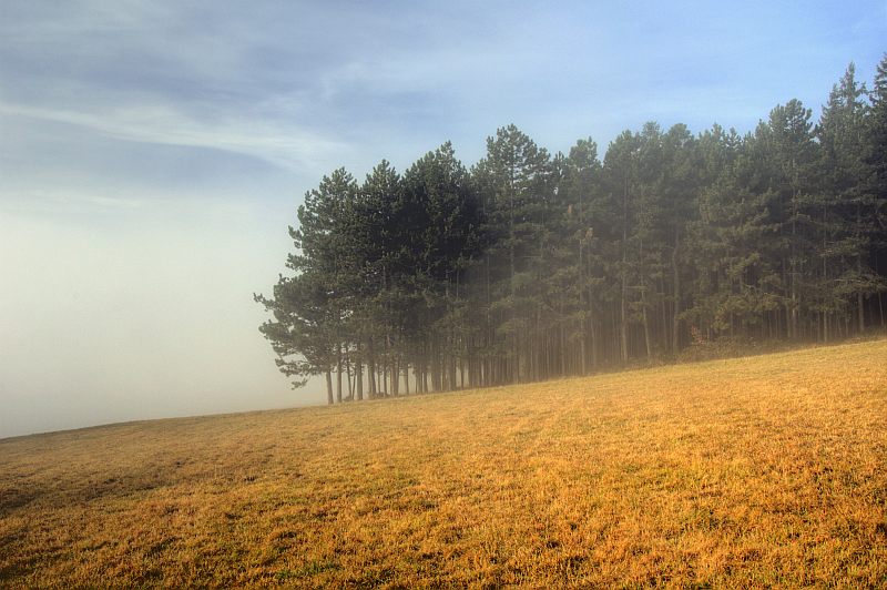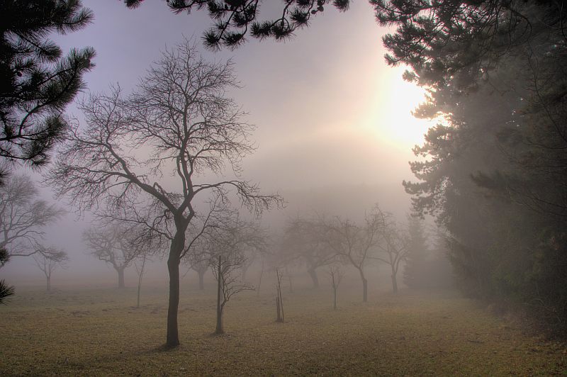 Heute ist Winzendorf in dichten Bodennebel gehüllt. Laut Schneeberg - Webkamera reicht der Nebel aber nicht sehr weit hinauf. Ich beschließe daher, heute den Kienberg zu versuchen, in der Hoffnung, dort bereits dem Nebel zu entkommen. Ich steige auf direktem Weg durch den Wald von einem Spielplatz zwischen Willendorf und Strelzhof aus auf.