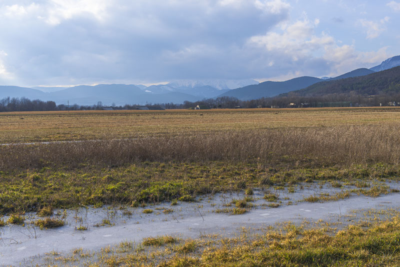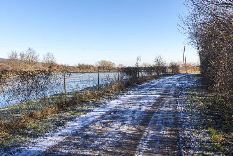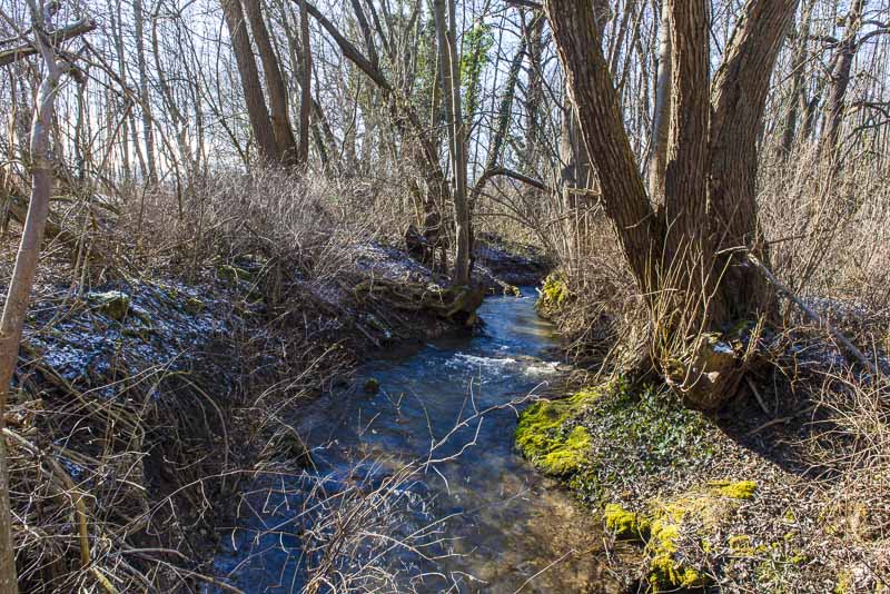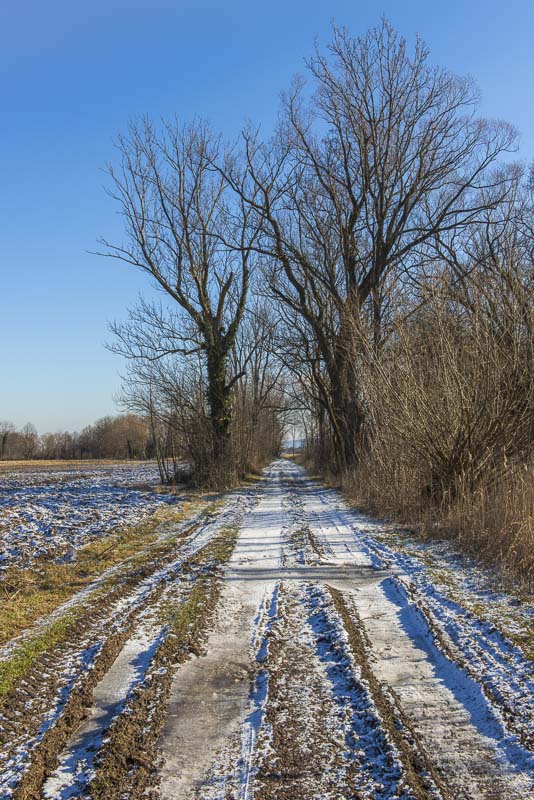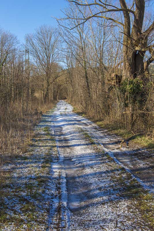 Auch am Weg durch den kleinen Auwald liegt Schnee.
