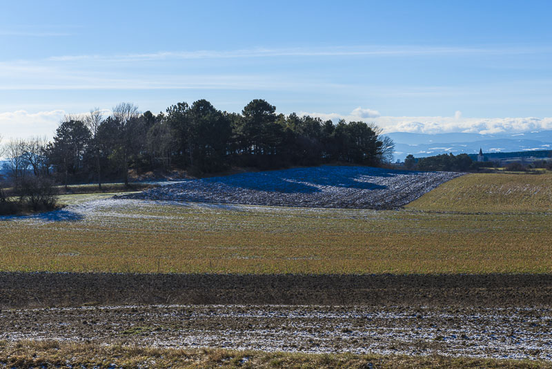 Am Blossen Berg bei Winzendorf. Links über die Felder muss ich noch, um mein Auto zu erreichen.