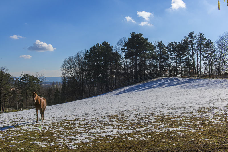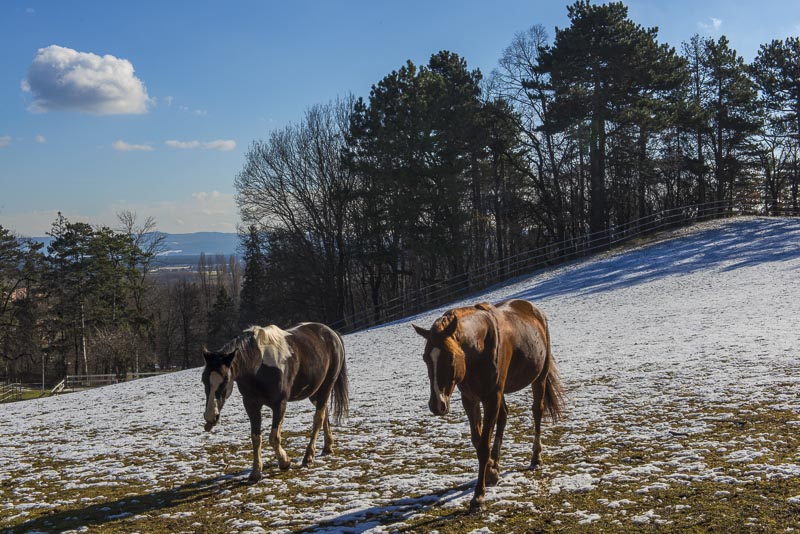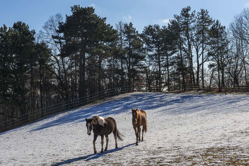 Hinter dem Ponyhof bei Schloss Strelzhof komme ich an einer Pferdekoppel vorbei ...
