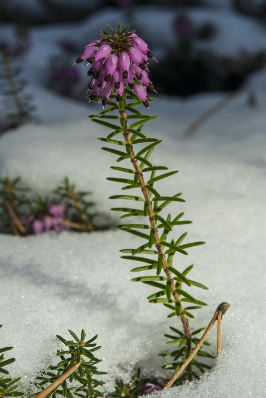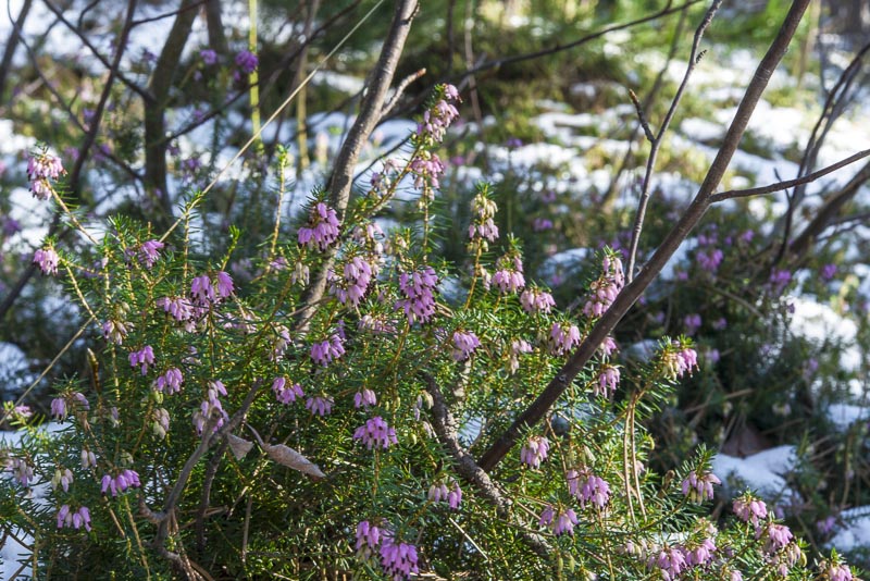 Auch heute kann ich wieder mein Makroobjektiv verwenden! Auf einem kleinen eingezäunten Gebiet, zu dem Wildtiere keinen Zutritt haben, hat sich die Schneeheide (Erica carnea, Erica herbacea) ausgebreitet - sie trägt ihren Namen völlig zu recht!