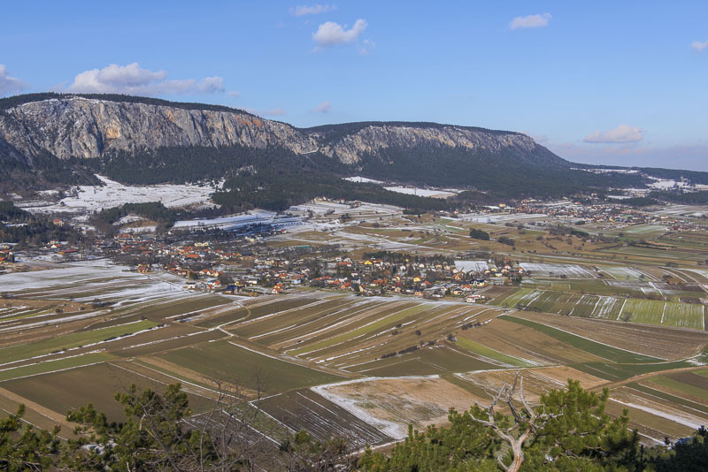 Die Gemeinde Hohe Wand mit den beiden Dörfern Maiersdorf und (im Hintergrund) Stollhof.