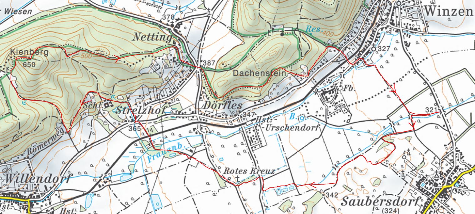 Strahlender Sonnenschein heute Morgen. Einiges gibt es zu erledigen, danach breche ich auf - von nahe Saubersdorf über Wiesen und Felder bis Strelzhof, dann auf den Kienberg, zurück durch den Wald und über Netting und durch Winzendorf und die Felder wieder zurück nach Saubersdorf. Ursprünglich sollte es eine Wanderung über die Felder werden, ich wollte gar nicht so lang unterwegs sein, aber weil es so schön war, habe ich noch verlängert, und dann war ich 4 1/4 Stunden ohne Pause unterwegs!