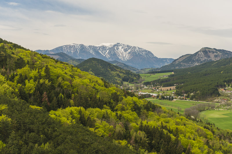 Beim Aufstieg über den Irmasteig hat man einen herrlichen Blick auf den Schneeberg.