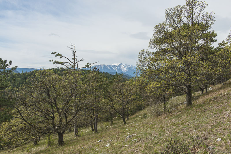 Es geht jetzt bergab durch einen wunderschönen lichten Wald aus Schwarzföhren, Steinweichseln ...